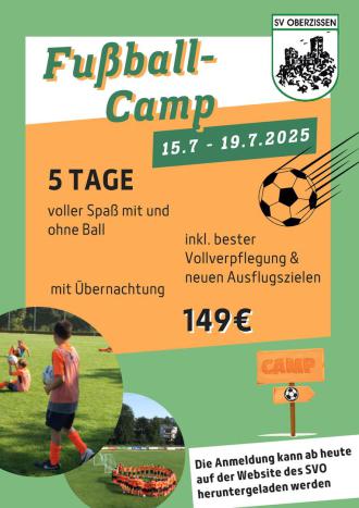 - Fußball-Camp 2025 – Anmeldung ab sofort möglichVom 15. Juli 2025 bis zum 19. Juli 2025 bietet der SV Oberzissen ein Fußballcamp für interessierte Kicker mit Übernachtung an. Eine Anmeldung für 5 Tage voller Spaß mit und ohne Ball ist für 149€ inkl. Vollverpflegung und neuen Ausflugszielen… Fußball-Camp 2025 – Anmeldung ab sofort möglich weiterlesen